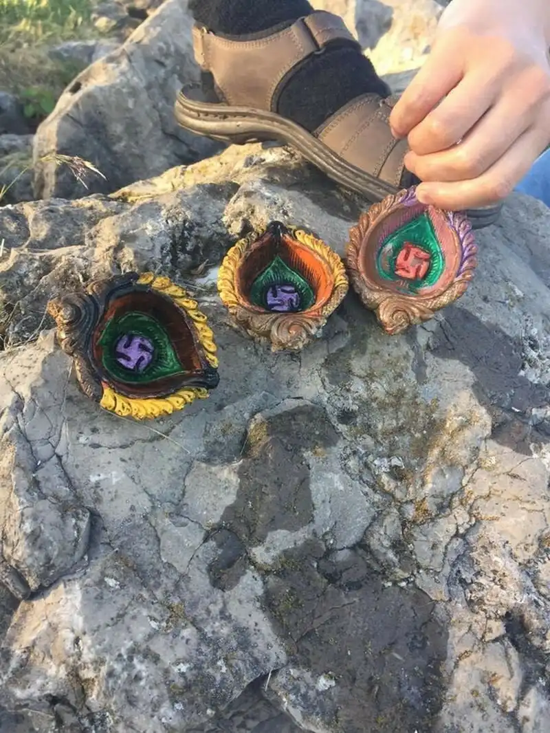 Ответ: это называется «Дия» («Дива», «Дипак»). Это масляные лампы, у этих видны обгоревшие кончики. Используются они в Индии и Непале на празднике Дивали.