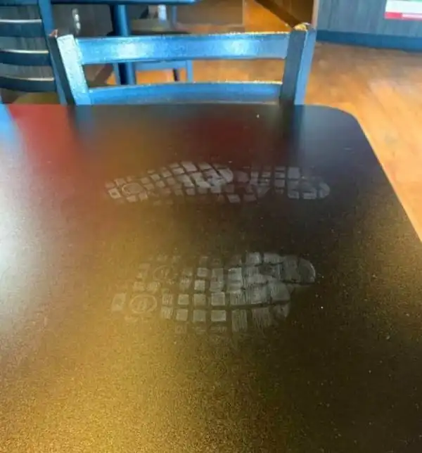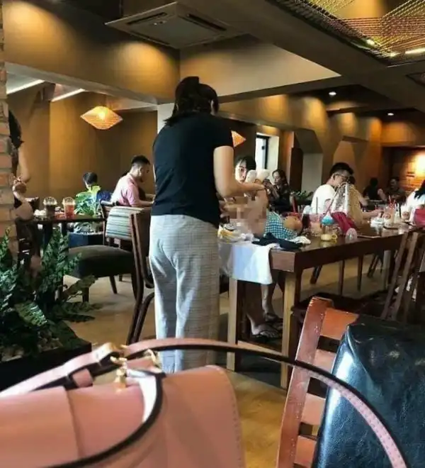 Еще одни родители, которые разрешили ребенку стоять на столе в ресторане