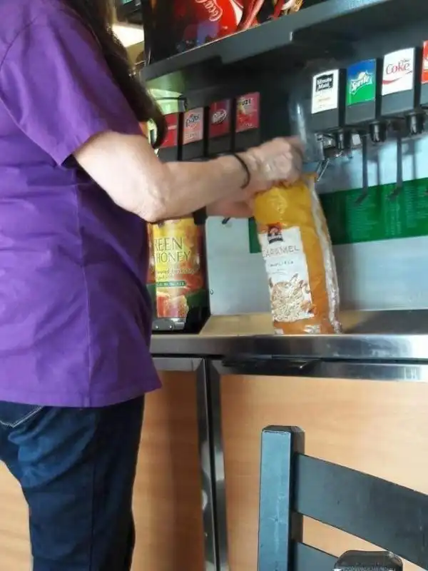 Что это было? Женщина принесла в ресторан пачку из-под попкорна, чтобы набрать в нее льда