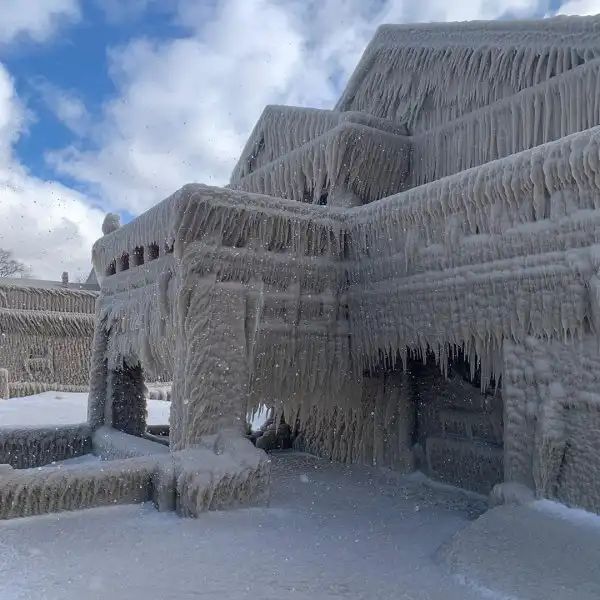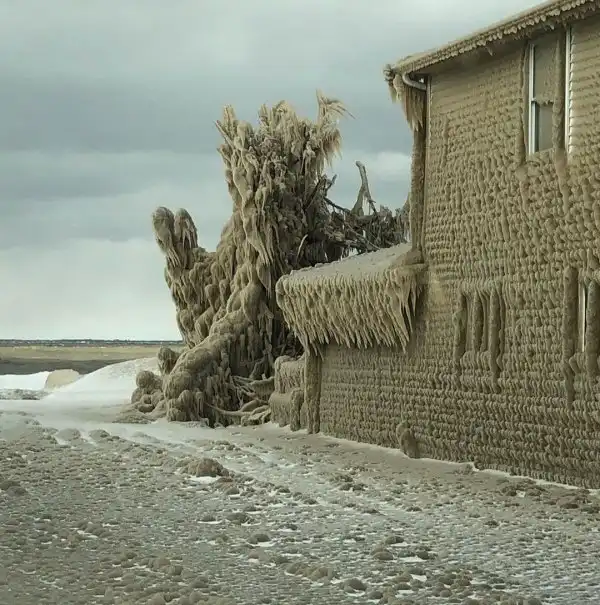 На календаре второй день весны. Скоро настанут светлые и теплые деньки. Но в природе опять что-то сломалось и американский город Гамбург превратился в настоящее ледяное царство. А все из-за сильного шторма, который обрушился на городок. Местное озеро Эри разбушевалось и поднялись волны, которые в сочетании с ветром превратились в ледяную корку на близлежащих домах. Теперь дома американцев превратились в настоящие иглу. Толщина льда составляет 7 сантиметров. Стихийное бедствие принесло много неудобств местным жителям, но зрелище вышло очень красивым. Давайте посмотрим.