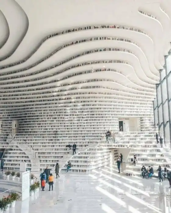 Библиотека в районе Биньхай города Тяньцзинь, Китай, занимает площадь 33,7 тыс. кв. м и вмещает более 1,2 млн книг. Её прозвали "Глазом".