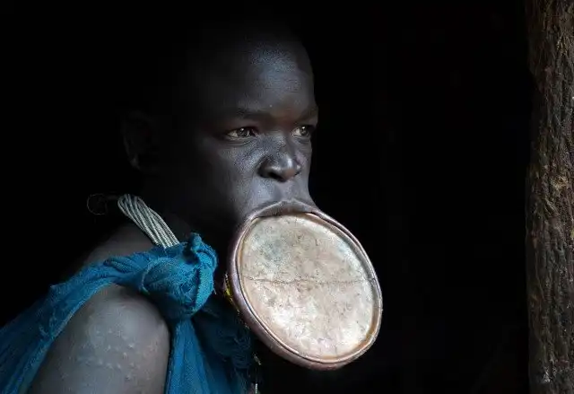 Племя Сури обитает в горах Великой Рифтовой долины на равнинах юго-западной Эфиопии в Африке. У женщин племени удаляют нижние зубы и прокалывают, а затем растягивают губы, чтобы вставить пластины. Чем больше тарелка, тем больше коров отец девушки может потребовать в приданое, когда его дочь выходит замуж.