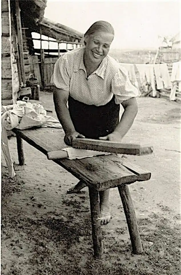 Глажка белья рубелём, СССР, 1940-е