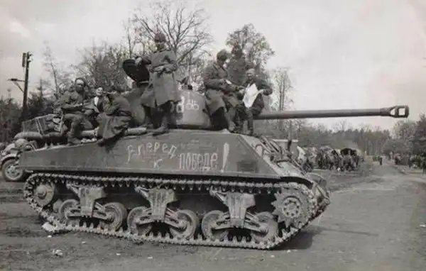 Советские солдаты на трофейном танке, Германия, 1945 год