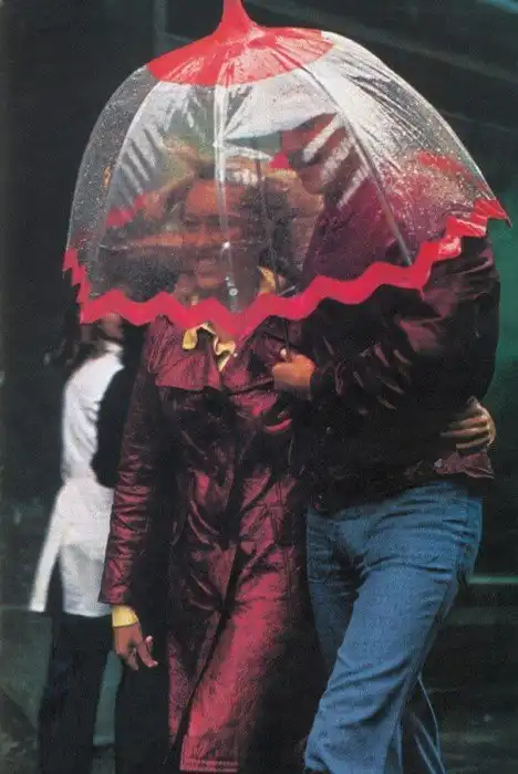 Под защитой пластика и джинсовой ткани таллинская пара пересекает одну из улочек Старого города, не обращая внимания на типичный для Балтики туман с дождем