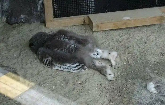 Мы привыкли видеть в зоопарках, что совы спят сидя, как и многие птицы, однако юные совята иногда спят лицом вниз, так как их голова еще слишком тяжелая