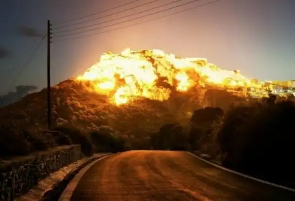 Солнечный свет на горе на закате превращает гору в масштабный взрыв