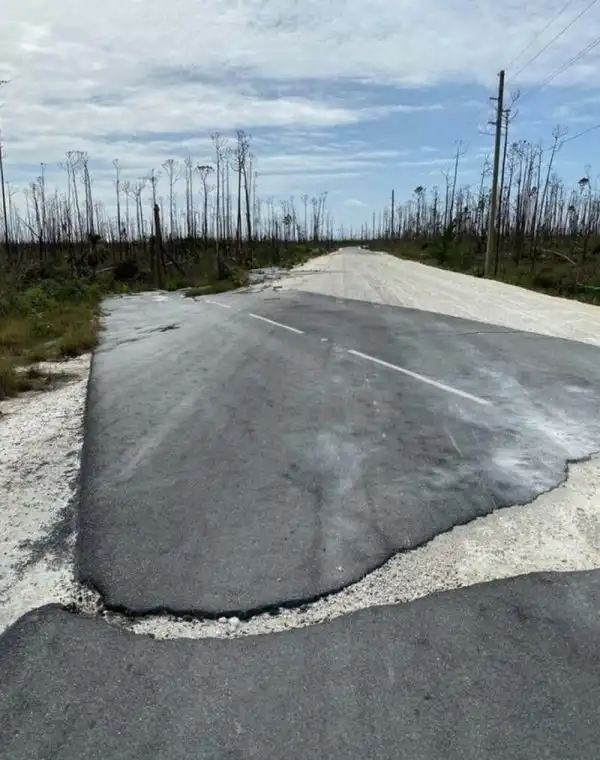 Ураганом сорвало и развернуло целый пласт дорожного покрытия