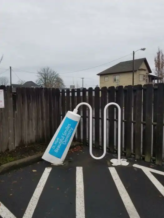 Выдавленная из тюбика велосипедная стойка, красующаяся у стоматологического кабинета