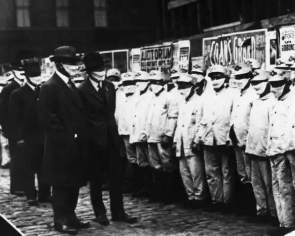 Чиновники инспектируют мусорщиков во время пандемии «испанки», 1918 год, Чикаго, США