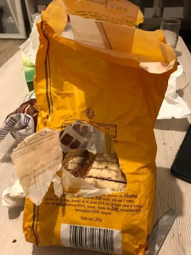 Брат надкусывает печенье, и кладёт его обратно в коробку
