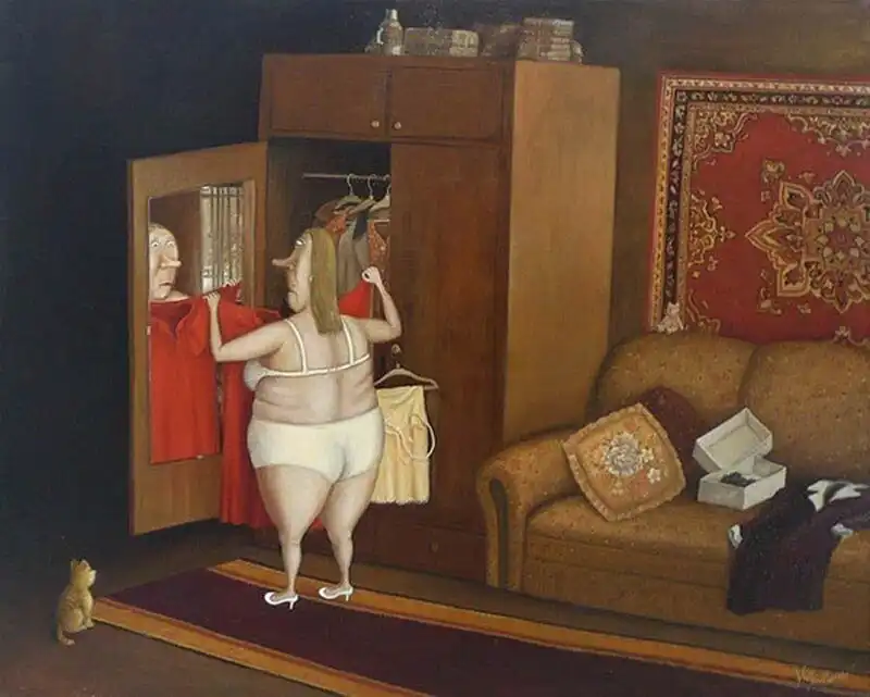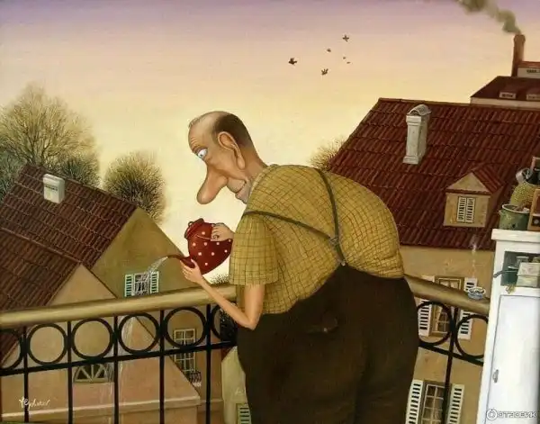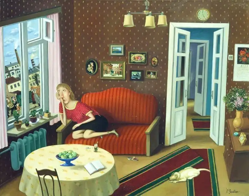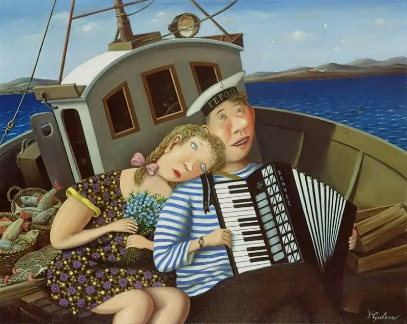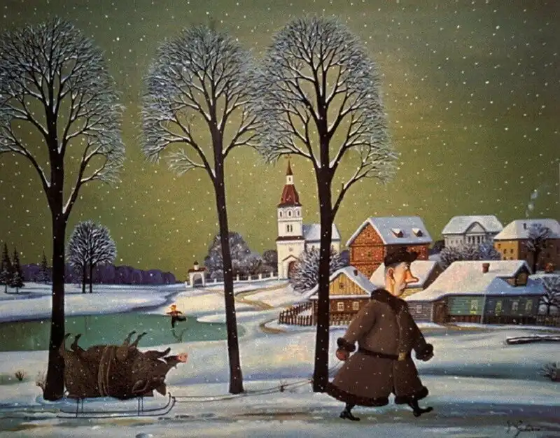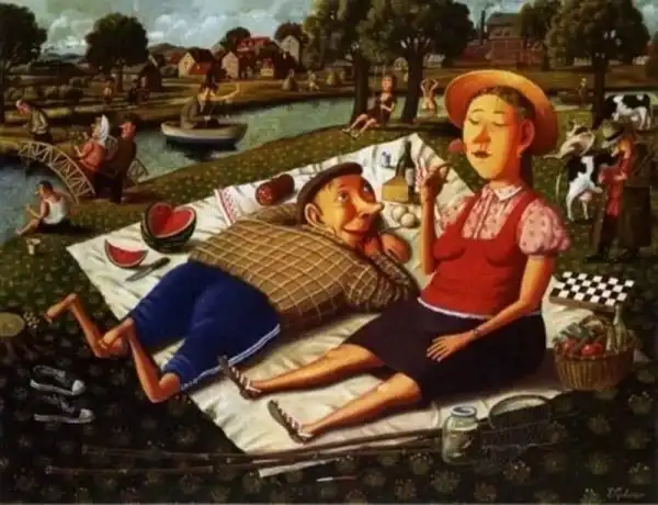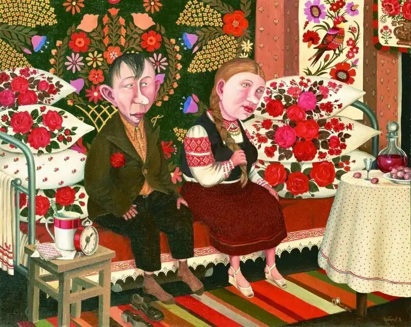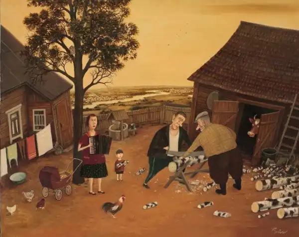 Персонажи его картин - обычные, простые люди, которые проживают свою жизнь со всеми её горестями и радостями. Они наивны, бескорыстны и чисты душой.