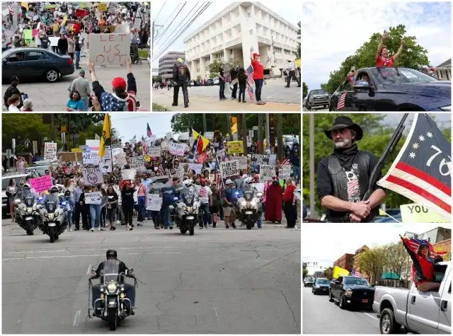Тысячи протестующих вышли на улицы Северной Каролины, Миссури, Алабамы и Флориды, чтобы потребовать от губернаторов положить конец правилам изоляции из-за коронавируса и вновь открыть Штаты для бизнеса.