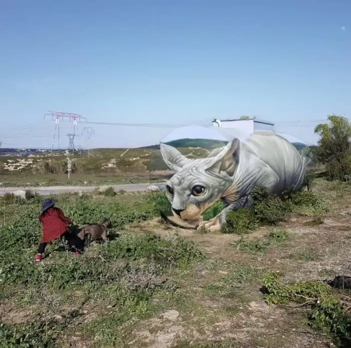 33-летний художник граффити Том Брагадо Бланко живет в Марселе. Его талант создавать 3D-изображения на уличных поверхностях поражает воображение! Гигантская кошка-сфинкс, прозрачная цистерна и другие творческие фантазии Тома кажутся абсолютно реальными.