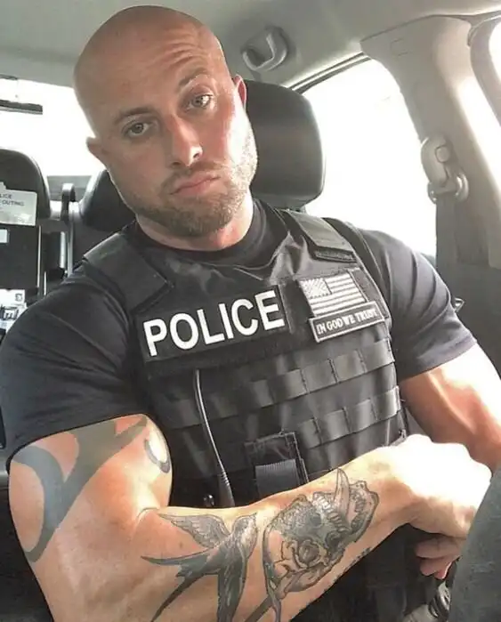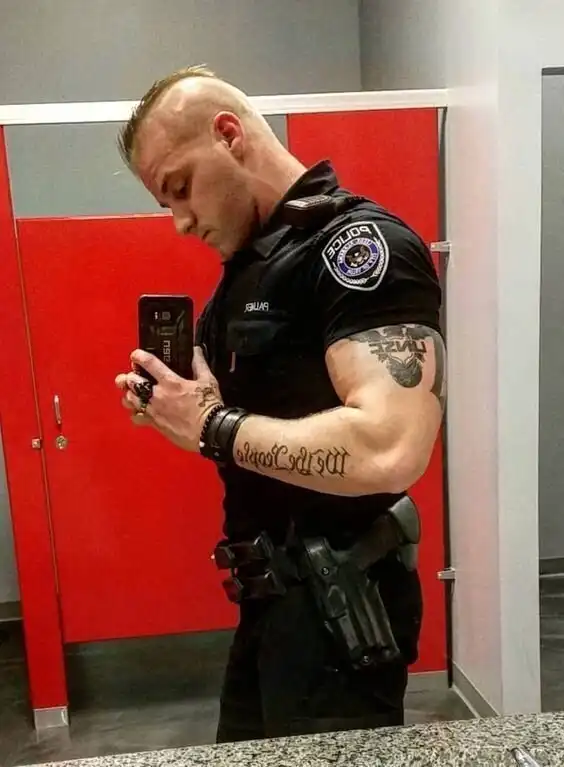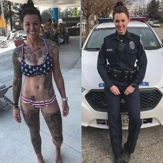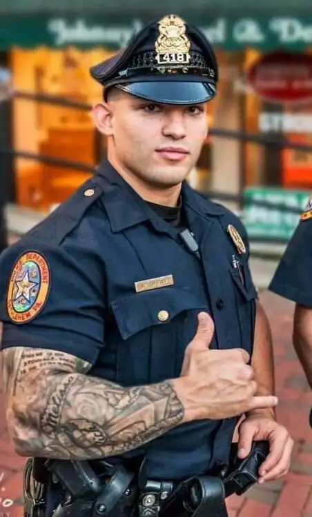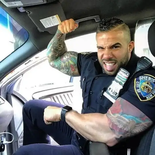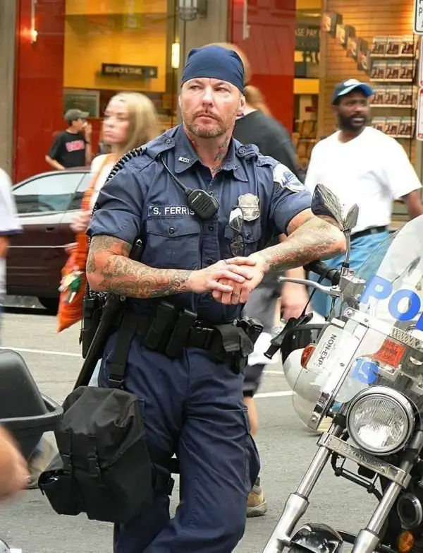 Все то у них там, в этой Америке, не как у людей - когда у нас видимых татуировок у служителей правоохранительных органов быть не должно, их копы демонстрируют полную раскраску, гордятся этим и позволяют с собой фотографироваться всем желающим...