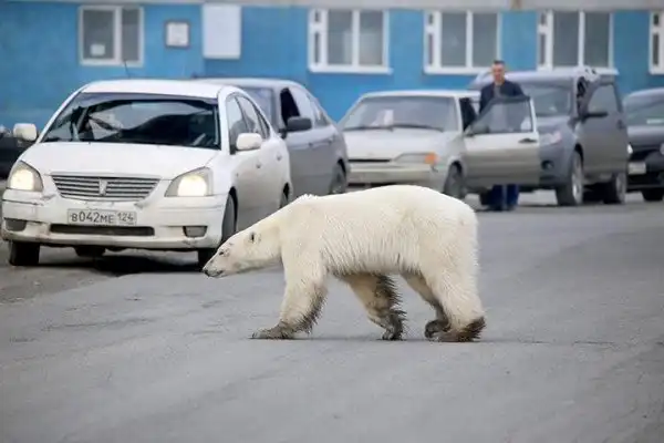 Просто белый медведь... в городе