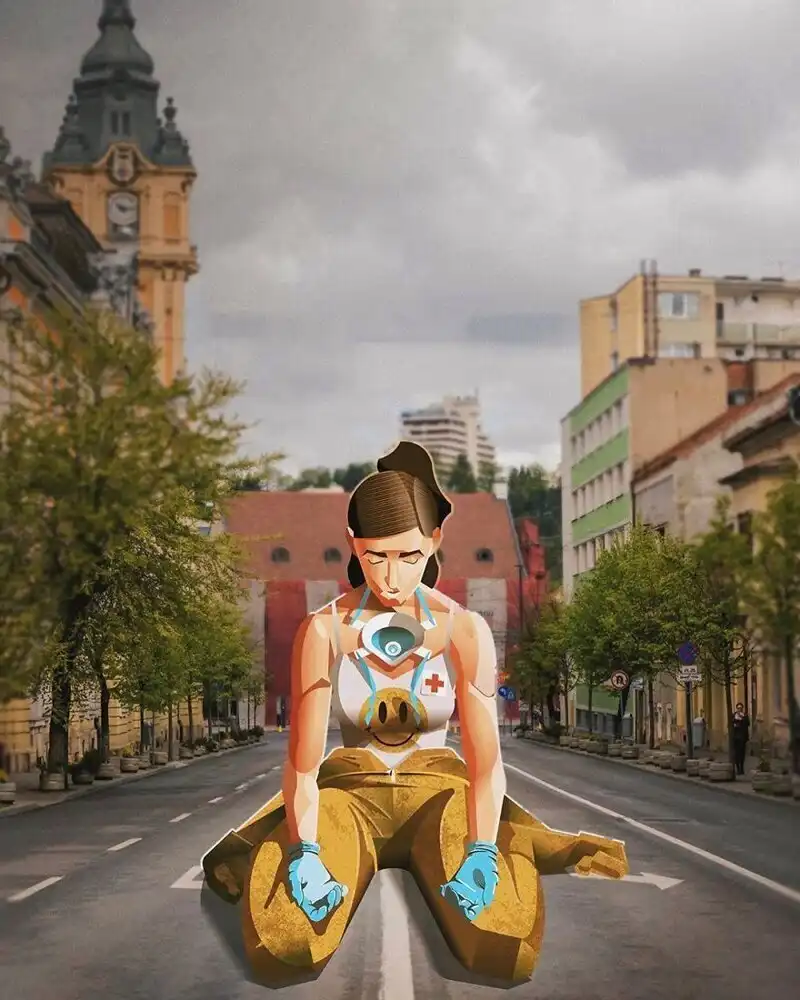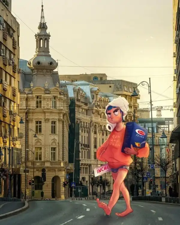 Клуж-Напока - город на северо-западе Румынии и неофициальная столица региона Трансильвания. В обычное время это университетский центр с оживленной ночной жизнью, но сейчас улицы опустели. Решив не упускать такой случай, местные художники начали вести фото-арт-проект по оживлению городских пейзажей. И вот что у них получается.