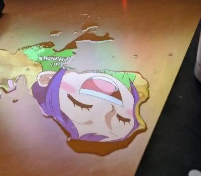 Вода вылилась на стол, и в ней отразилось изображение с компьютера
