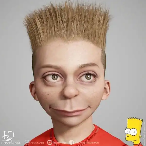 Хоссейн Диба из Турции больше десяти лет работает художником по персонажам. За годы работы он стал настоящим мастером своего дела. Диба делится своими проектами в Instagram, где пользователи могут оценить очень реалистичные 3D-модели известных людей и персонажей. На Хоссейна подписано почти 90 тысяч человек и всем очень нравится творчество художника. Но его последний проект не столько впечатлил народ, сколько испугал. Диба решил воссоздавать в 3D-персонажей "Симпсонов", стараясь соблюсти баланс между реализмом и стилистикой мультика, пишет пишет LADBible.