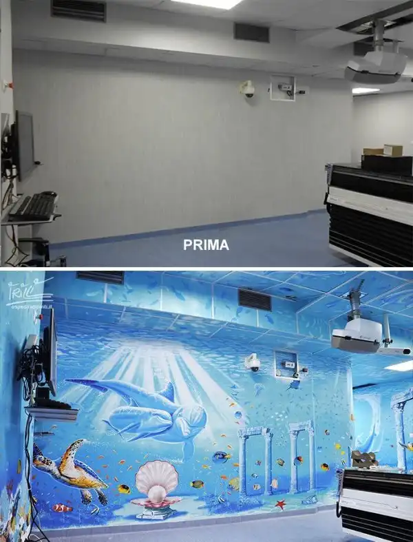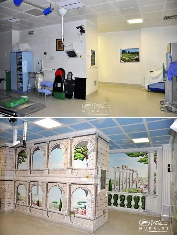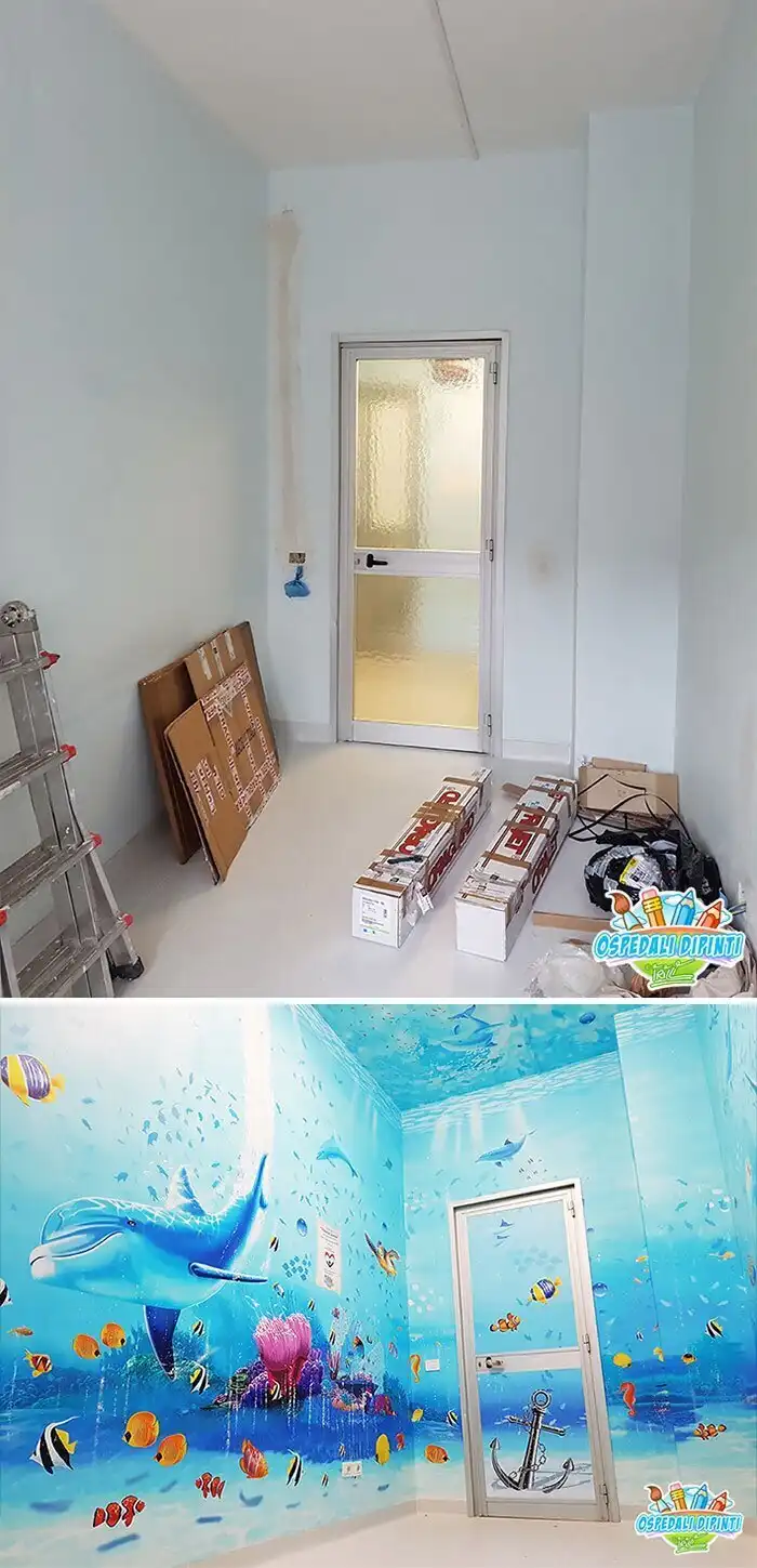 Уже семь лет итальянский художник Сильвио Ирилли расписывает стены в госпиталях жизнеутверждающими фресками. За это время он превратил в сказочные царства уже 12 детских и взрослых больниц. По убеждению художника, его росписи в палатах, процедурных и операционных поднимают настроение и помогают пациентам даже во время самых тяжелых процедур "сохранять радость и мужество".