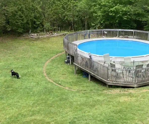 Эту тропинку вытоптал пес, который очень любит бегать бассейна