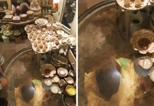 А в этой торговой точке прозрачный пол - и через него виден вход в подземную пещеру
