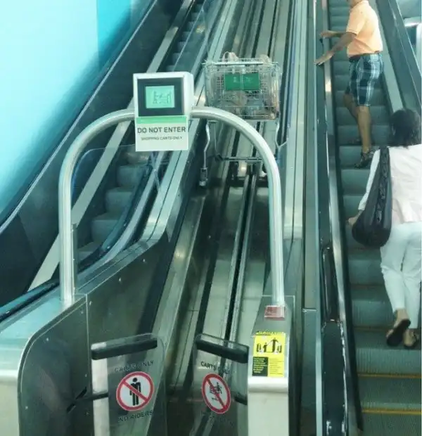 Здесь можно поставить тележку на отдельный эскалатор и поднять ее наверх