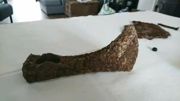 Сначала под слоем песка они нашли стеклянную бусину, которую норвежка сначала приняла за колесо от игрушечной машинки. Но когда достали большой топор, но им стало не по себе. Семья связалась с администрацией округа Нурланд, которые занимаются "сохранением культурного наследия страны". Вскоре к ним приехал археолог Мартинус Хауглид, который заявил им, что все это время они жили над древней могилой викинга.