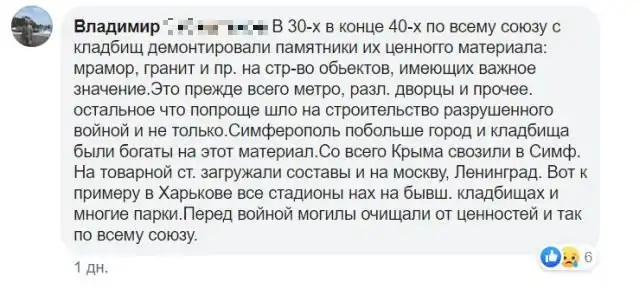 В Симферополе во время ремонта фасада техникума железнодорожного транспорта и промышленности вскрылся довольно мрачный сюрприз. Местная жительница Елена заметила его и сделала несколько фотографий, которые опубликовала в группе в Facebook. Пост довольно быстро разлетелся по Сети и вызвал активное обсуждение. Оказалось, что при строительстве техникума использовались надгробные плиты.