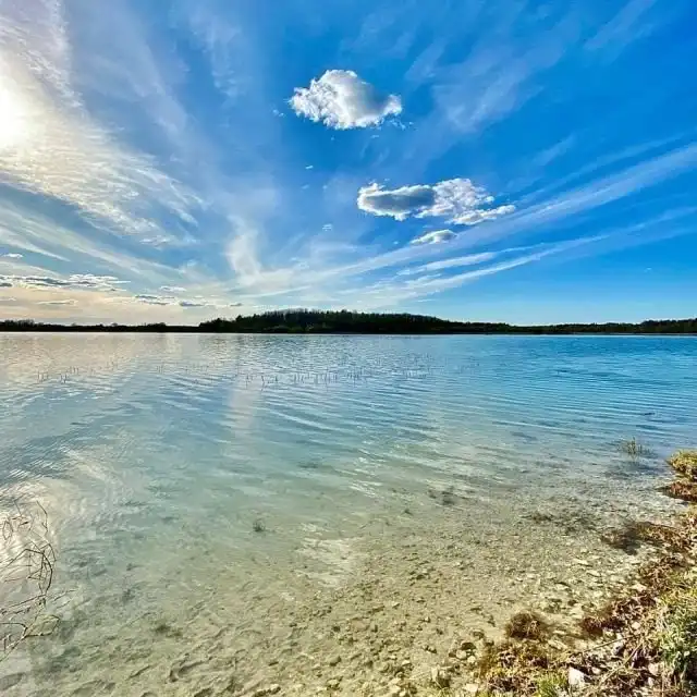 Но это не единственное место в Ленинградской области, в котором вообразить себя на Мальдивах. Примерно в получасе находится озеро Донцо - часть Кюрлевских карьеров. Местные воды имеют весьма необычный цвет.