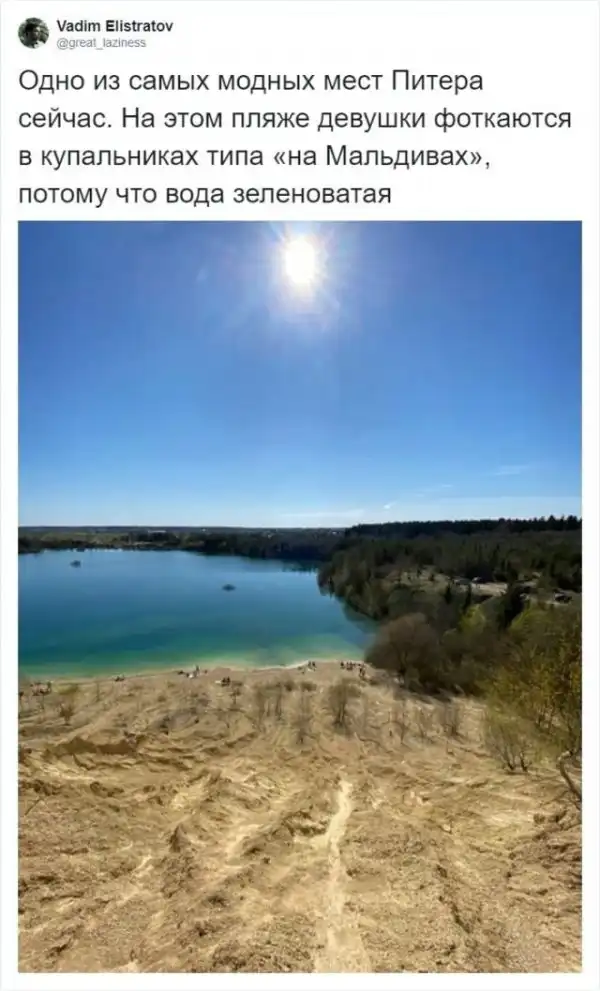 Помните, как в прошлом году прославились "Новосибирские Мальдивы"? У этой туристической точки появился новый конкурент. Жители Петербурга, которые очень устали от карантина и очень соскучились по лету, нашли в Ленобласти красивое место, которое так и манит любителей Instagram. В действительности это место совсем "не тропический рай", но людей это совсем не останавливает. Фотографии получились действительно "курортные".