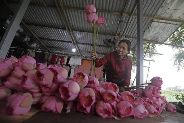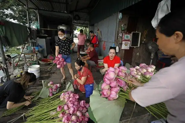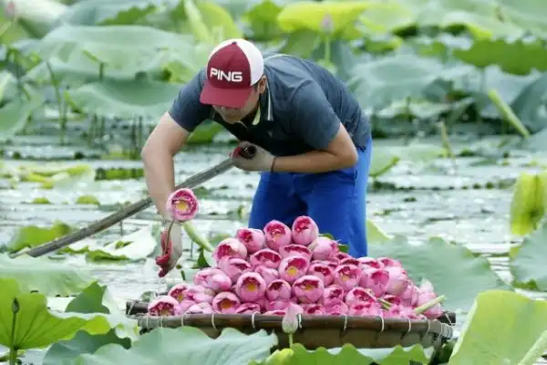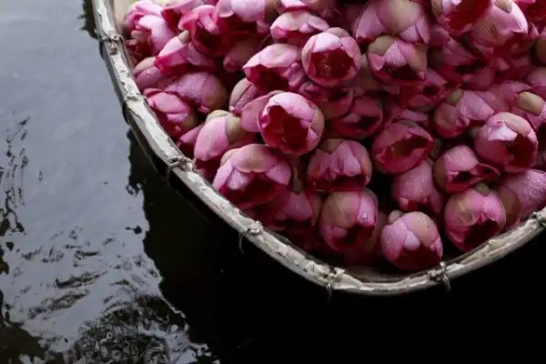 Вот так проходит сбор лотоса на озере в Ханое. Рано утром несколько человек отправляются на лодках собирать цветы в озере. Затем их доставляют на берег озера и опытные мастера по приготовлению чая с запахом лотоса начинают открывать лепестки цветов. Внутри находятся золотистые тычинки с белыми зернами похожими на рис. Эти белые зерна считаются самой ценной частью лотоса. Их складывают слоями, чередуя с чаем. Затем чай и белые зерна сушат на медленном огне, этот процесс повторяется десять раз. Только после этого цикла, который продолжается обычно полмесяца чай дает аромат лотоса.