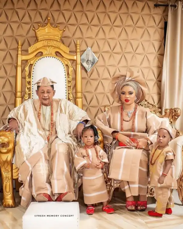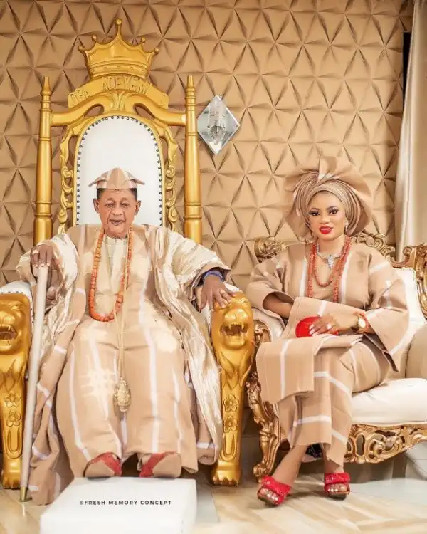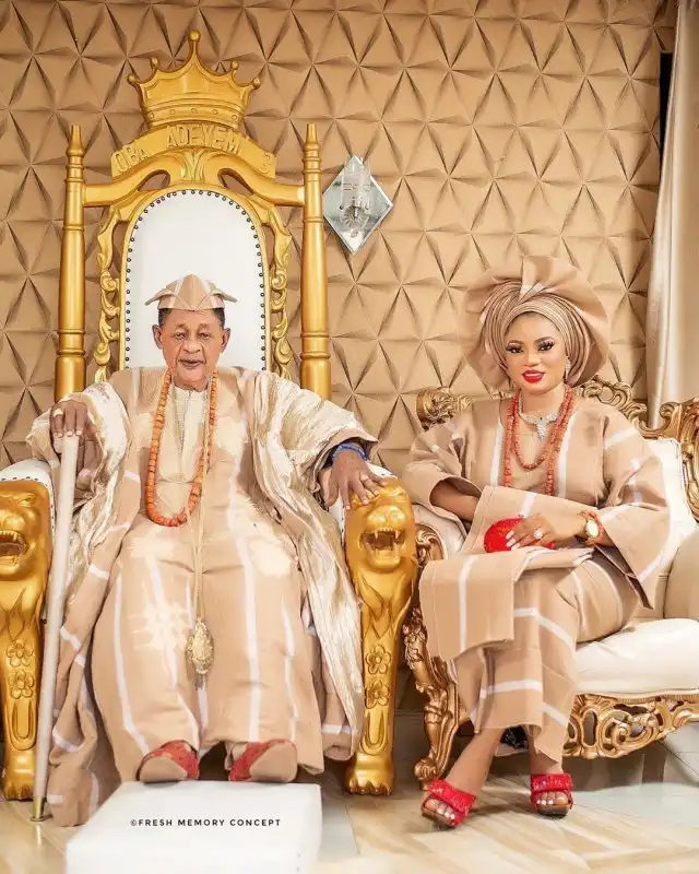 81-летний африканский король Ламиди Адейеми III отпраздновал день рождения 22-летней жены Ануолувапо Адейеми, которую ему «подарили» в знак уважения