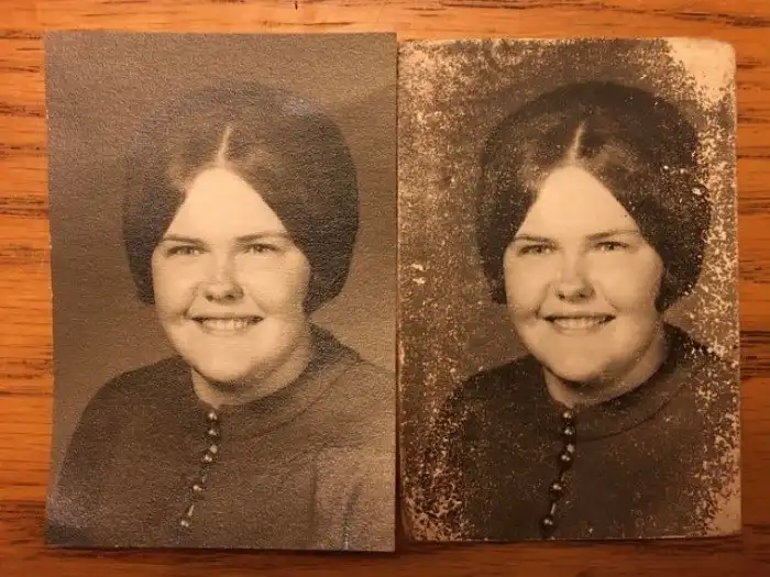 3. Слева фото, которое лежало в альбоме, справа - снимок, который носили в кошельке с 1971 года