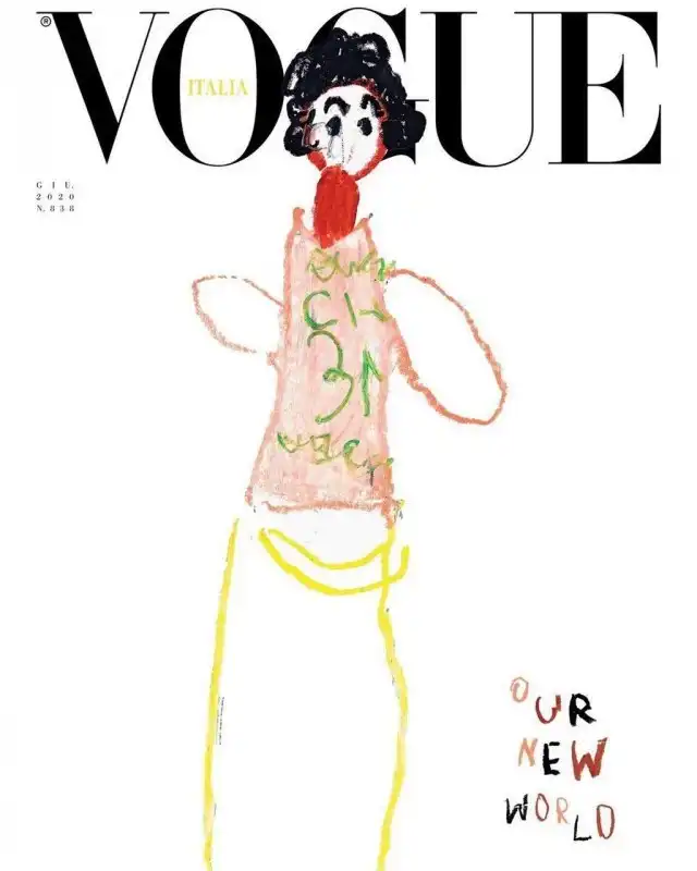 Недавно в Италии впервые вышел VOGUE с пустой обложкой, смысл которой был: мы начинаем жизнь с чистого листа. Теперь редакторы решили пойти еще дальше и выпустили новые обложки с детскими рисунками "Наш новый мир".
