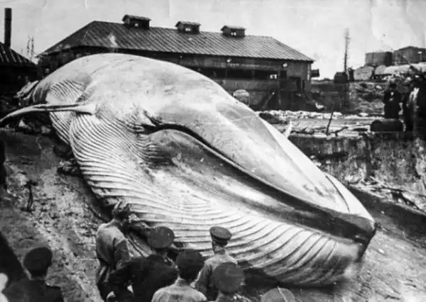 Кит, выброшенный цунами на берег, 1952 год, Северо–Курильск, СССР