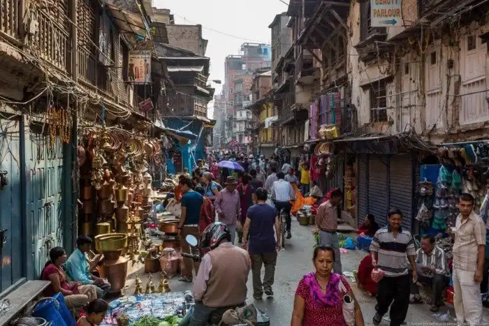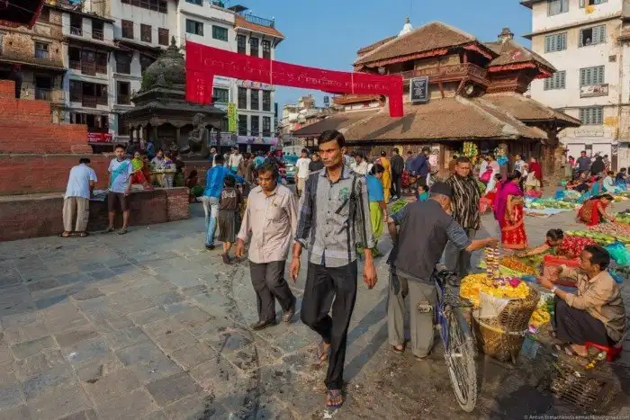 Катманду, центральная площадь, Дурбар-сквер. Социальный, культурно-исторический и религиозный центр Катманду, соединяющий в себе комплекс дворцов и храмов, которые строились между XII и XVIII веками царями династии Малла. С раннего утра тут царит торговая суета делая это место очень привлекательным для любителей жанровой съемки.