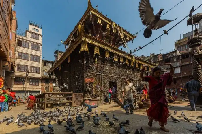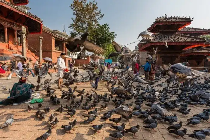Площадь Дурбар известна своими голубями, птиц кормят при каждом храме.