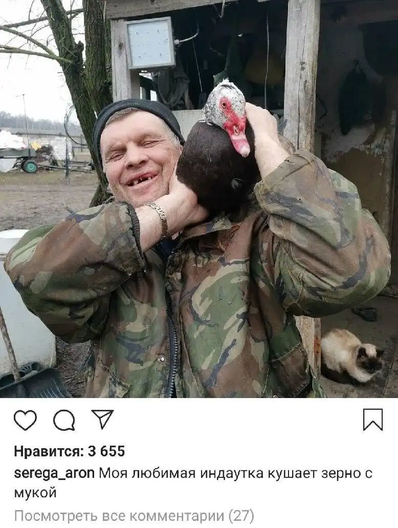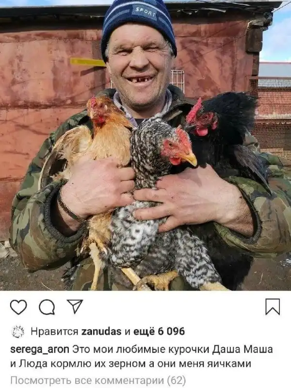 Хоть нет зубов, но он реально счастлив! Это просто русский человек, радуется своей жизни в деревне, поросятам и курям, хоть и живет без зубов и без нового макбука. Тем временем миллениалы уже бегут к психотерапевту.