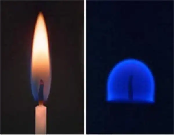 На Земле свеча горит высоким желтым пламенем, а в космосе лишь небольшим синим огоньком