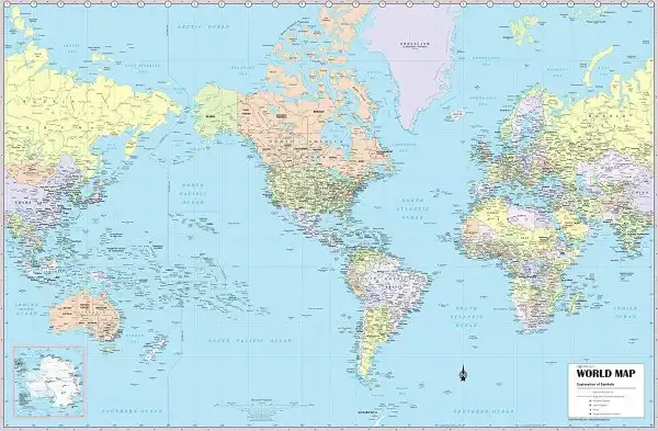 А эта карта почти ничем не отличается от карты, используемой в России. Единственное различие в том, что Европа находится в самом центре карты.