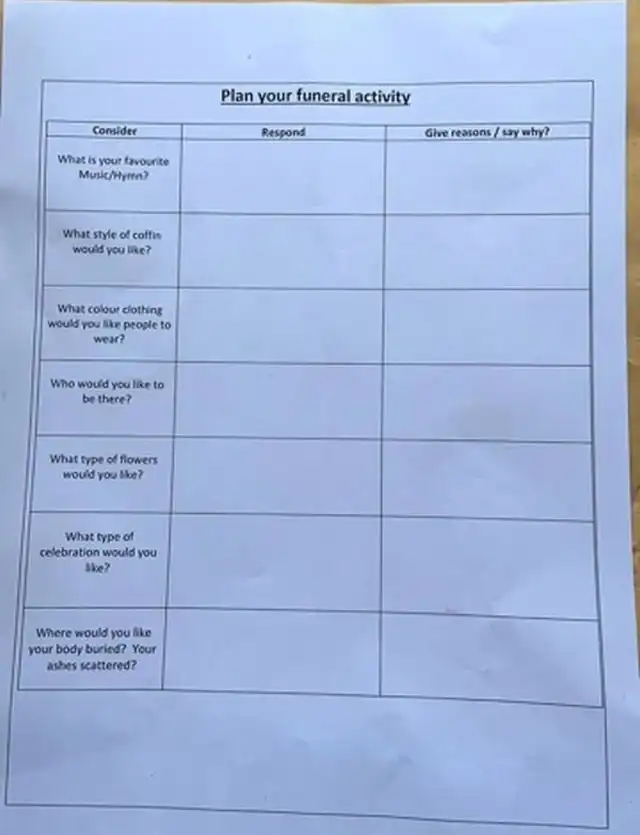 Задание для британских школьников: "Спланируйте свои похороны"