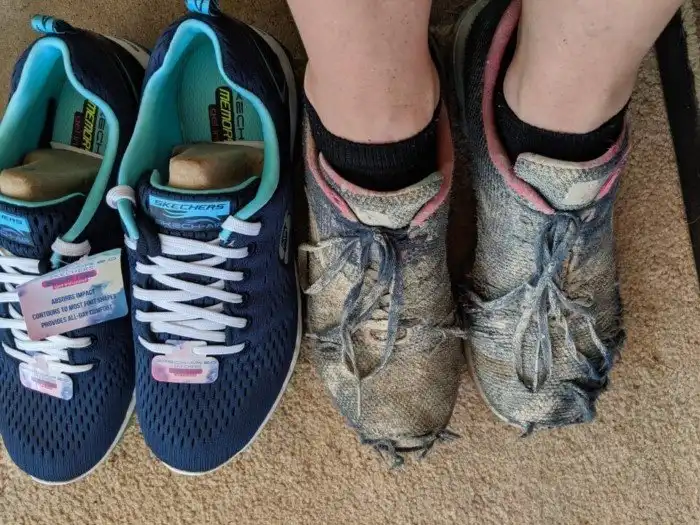 12. «Я работаю маляром на стройке, а это мои кроссовки после года использования»