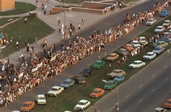 Жители Прибалтики выстроились в "цепочку солидарности", соединяющей Вильнюс и Таллин 23 августа 1989 года, чтобы осудить советско-германский пакт о ненападении от 23 августа 1939 года