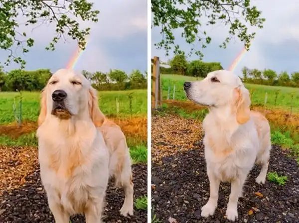 Песик умеет пускать радугу из головы