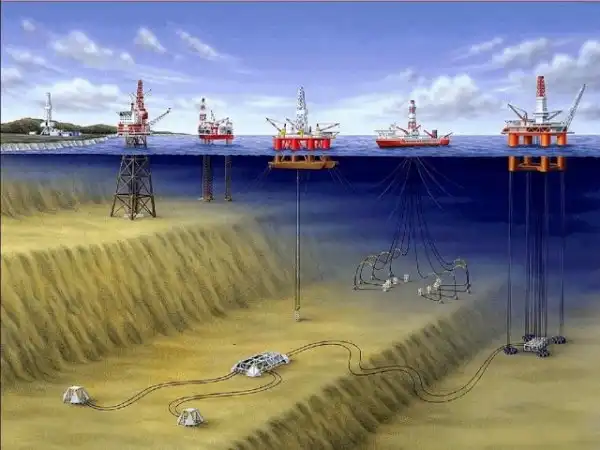 Вот кстати, такие варианты добычи нефти под водой существуют. Наша платформа, как раз для первого варианта. Это ее основание.