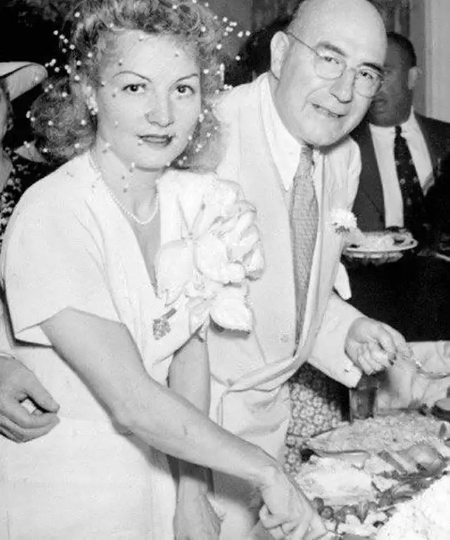 Енох «Наки» Джонсон и его невеста Флосси Осбек режут свадебный торт — за день до отправки жениха в тюрьму, 1941 год, США