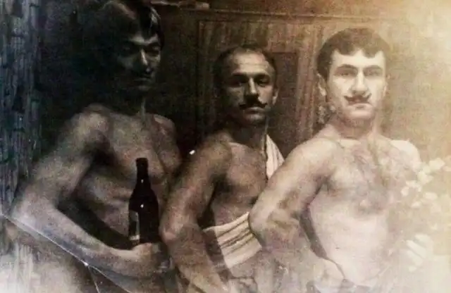 Александр Збруев, Лев Дуров и Леонид Каневский в бане, 1960–е годы, Москва