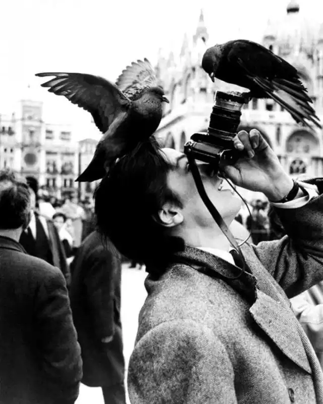 Ален Делон и голуби с площади Святого Марка, Венеция, 1962 год.