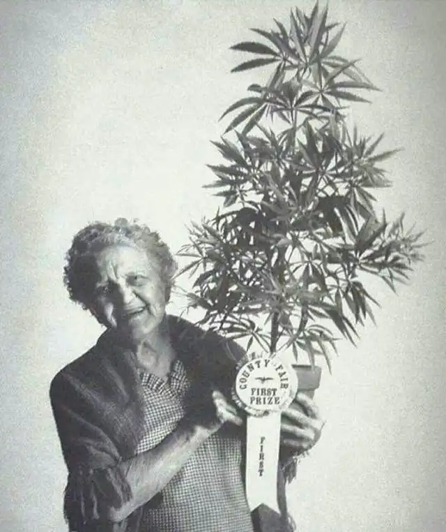 Радостная бабуля с номинацией "Лучшая Марихуана в Округе", Калифорния, 1973 год.